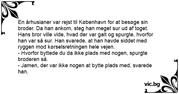 En århusianer var rejst til København for at besøge sin broder. Da han ankom, steg han meget sur ud af toget.