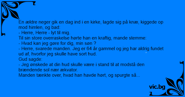 - Herre, svarede manden. Jeg er 64 år gammel og jeg har aldrig fundet ud af, hvorfor jeg skulle have sort hud.