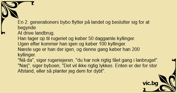 "Nå da", siger rugeriejeren, "du har nok rigtig fået gang i lanbruget".