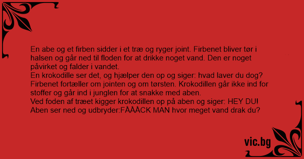Ved foden af træet kigger krokodillen op på aben og siger: HEY DU!