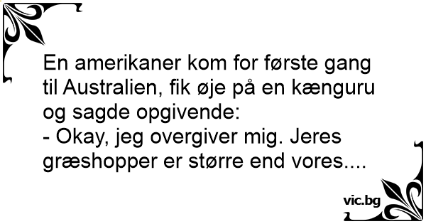 En amerikaner kom for første gang til Australien, fik øje på en kænguru og sagde opgivende: