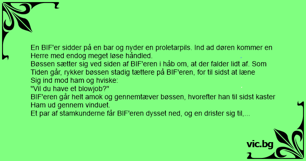 En BIF'er sidder på en bar og nyder en proletarpils. Ind ad døren kommer en
