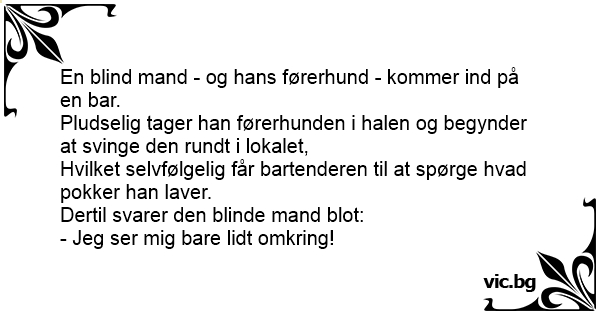 En blind mand - og hans førerhund - kommer ind på en bar.