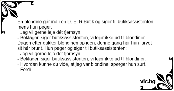 - Beklager, siger butiksassistenten, vi lejer ikke ud til blondiner.