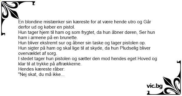 En blondine mistænker sin kæreste for at være hende utro og Går derfor ud og køber en pistol.