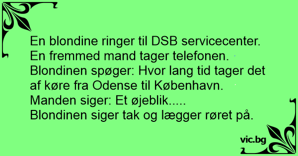Blondinen spøger: Hvor lang tid tager det af køre fra Odense til København.