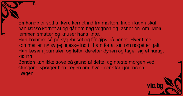 Bonden kan ikke sove på grund af dette, og næste morgen ved stuegang spørger han lægen om, hvad der står i journalen. Lægen svarer: