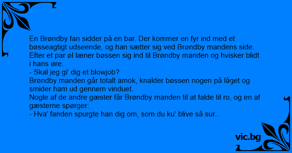 En Brøndby fаn sidder på en bar. Der kommer en fyr ind med et bøsseagtigt udseende, og han sætter sig ved Brøndby mandens side.