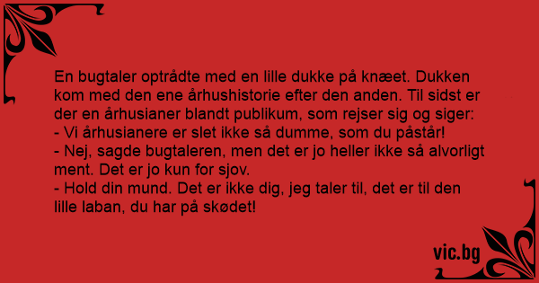 - Nej, sagde bugtaleren, men det er jo heller ikke så alvorligt ment. Det er jo kun for sjov.