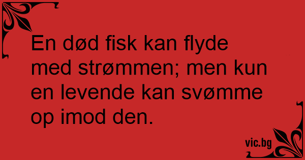 En død fisk kan flyde med strømmen; men kun en levende kan svømme op imod den.