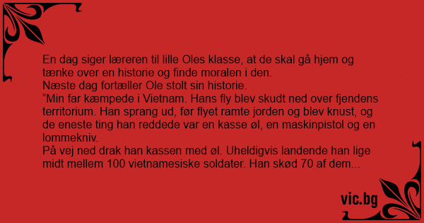 Læreren ser chokeret på Ole og spørger, om der i det hele taget er en morale på den historie.