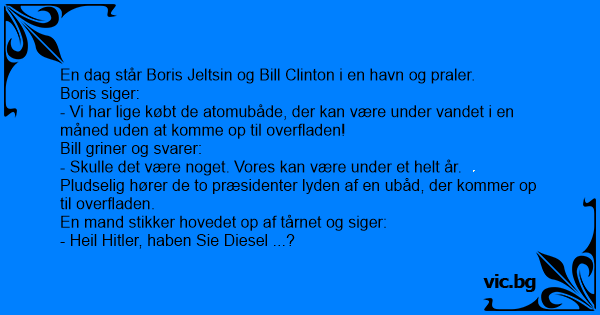 En dag står Boris Jeltsin og Bill Clinton i en havn og praler.