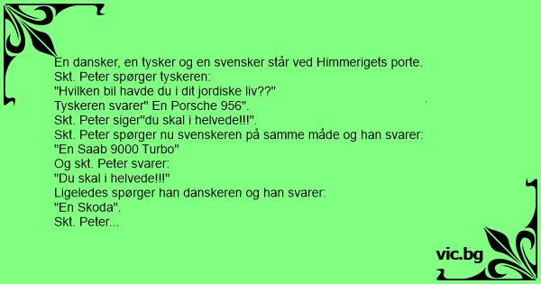 "Hvorfor kommer danskeren i Himlen?" spørger tysken og svensken.