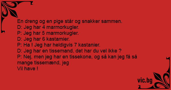 P: Nej, men jeg har en tissekone, og så kan jeg få så mange tissemænd, jeg