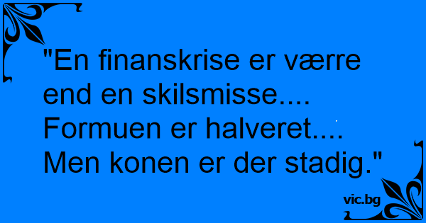 "En finanskrise er værre end en skilsmisse.... Formuen er halveret.... Men konen er der stadig."