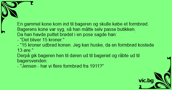 En gammel kone kom ind til bageren og skulle købe et formbrød.