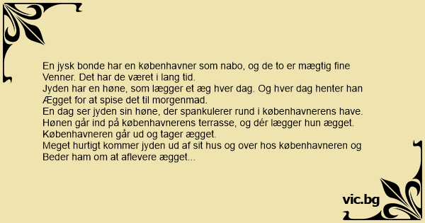 - Behøves ikke, svarer jyden, du kan bare beholde dit æg!