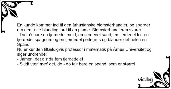 En kunde kommer ind til den århusianske blomsterhandler, og spørger om den rette blanding jord til en plante. Blomsterhandleren svarer: