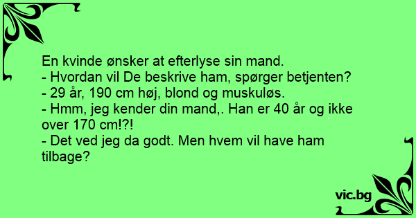 - Hmm, jeg kender din mand,. Han er 40 år og ikke over 170 cm!?!