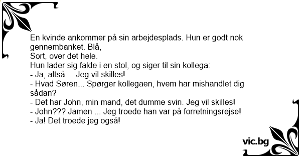 - Det har John, min mand, det duмме svin. Jeg vil skilles!