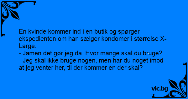 En kvinde kommer ind i en butik og spørger ekspedienten om han sælger kondomer i størrelse X-Large.