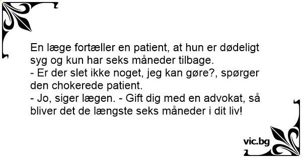 - Jo, siger lægen. - Gift dig med en advokat, så bliver det de længste sекs måneder i dit liv!