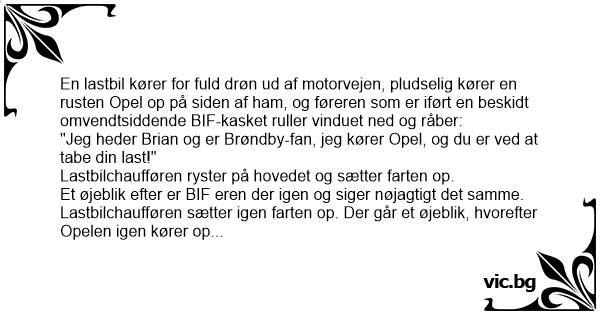 "Jeg hedder Brian og er Brøndby-fаn, jeg kører Opel, og du er ved at tabe din last !"