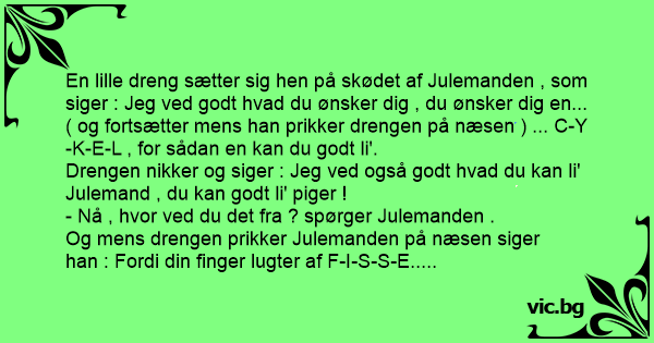 Og mens drengen prikker Julemanden på næsen siger han : Fordi din finger lugter af F-I-S-S-E.....