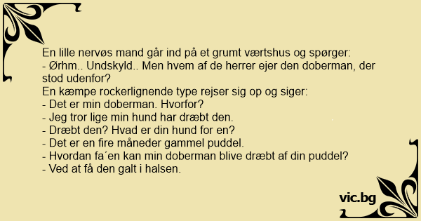 - Ørhm.. Undskyld.. Men hvem af de herrer ejer den doberman, der stod udenfor?