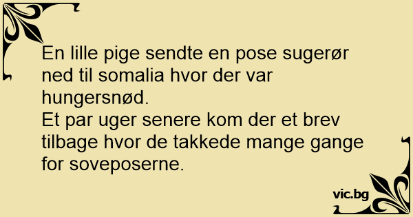 En lille pige sendte en pose sugerør ned til somalia hvor der var hungersnød.