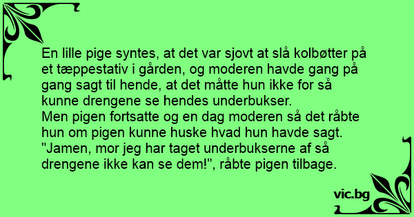 "Jamen, mor jeg har taget underbukserne af så drengene ikke kan se dem!", råbte pigen tilbage.