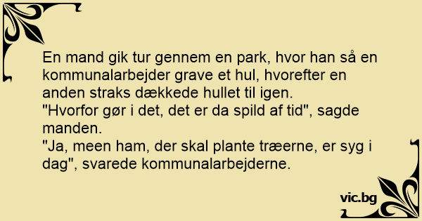 "Ja, meen ham, der skal plante træerne, er syg i dag", svarede kommunalarbejderne.