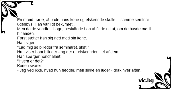 "Lad mig se billeder fra seminaret, skat."