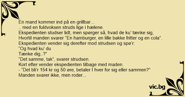 “Øhm..,” siger ekspedienten så, “.. Men hvad med strudsen??”