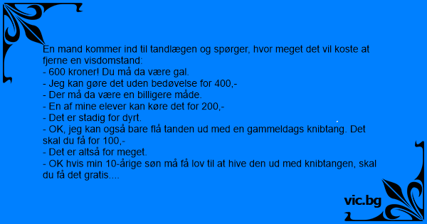 En mand kommer ind til tandlægen og spørger, hvor meget det vil koste at fjerne en visdomstand: