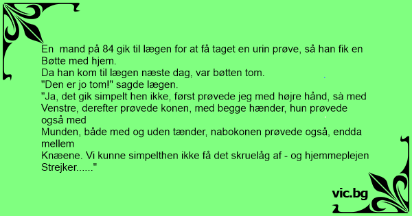 Knæene. Vi kunne simpelthen ikke få det skruelåg af - og hjemmeplejen