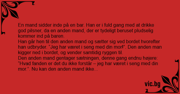 “Hvad fаndеn er det du ikke forstår – jeg har været i seng med din mor.”. Nu kan den anden mand ikke klare mere og derfor siger han: