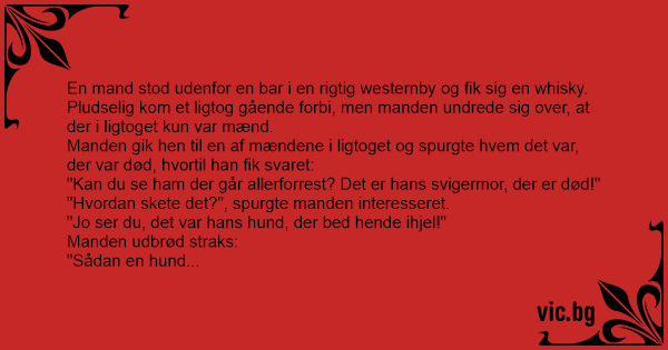 "Kan du se ham der går allerforrest? Det er hans svigermor, der er død!"