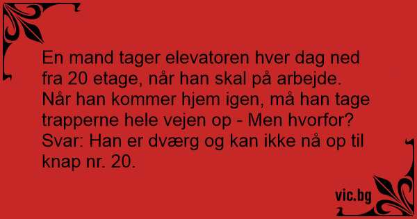 En mand tager elevatoren hver dag ned fra 20 etage, når han skal på arbejde. Når han kommer hjem igen, må han tage trapperne hele vejen op - Men hvorfor?