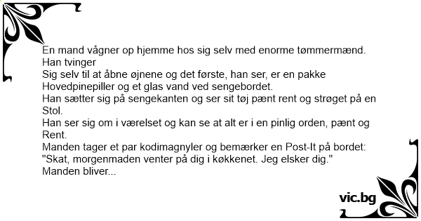 "Skat, morgenmaden venter på dig i køkkenet. Jeg elsker dig."