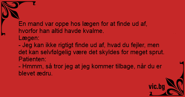 - Jeg kan ikke rigtigt finde ud af, hvad du fejler, men det kan selvfølgelig være det skyldes for meget sprut.