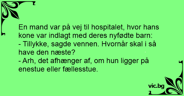 - Tillykke, sagde vennen. Hvornår skal i så have den næste?