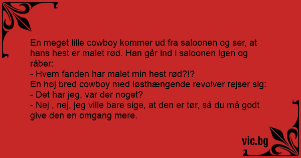 En meget lille cowboy kommer ud fra saloonen og ser, at hans hest er malet rød. Han går ind i saloonen igen og råber: