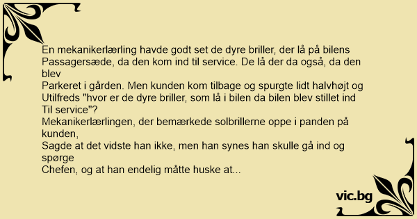 Mekanikerlærlingen, der bemærkede solbrillerne oppe i panden på kunden,