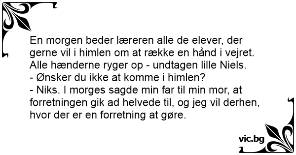 En morgen beder læreren alle de elever, der gerne vil i himlen om at række en hånd i vejret.