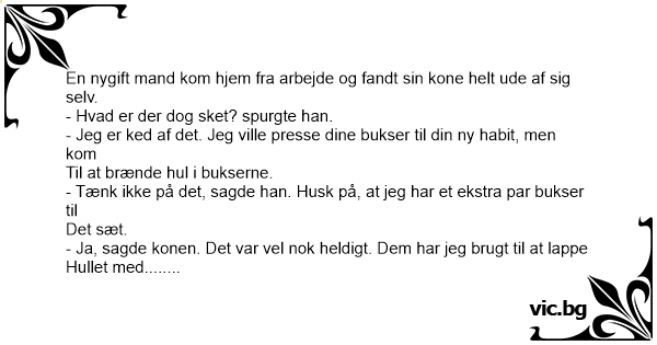 En nygift mand kom hjem fra arbejde og fandt sin kone helt ude af sig selv.
