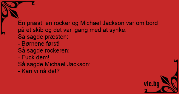En præst, en rocker og Michael Jackson var om bord på et skib og det var igang med at synke.