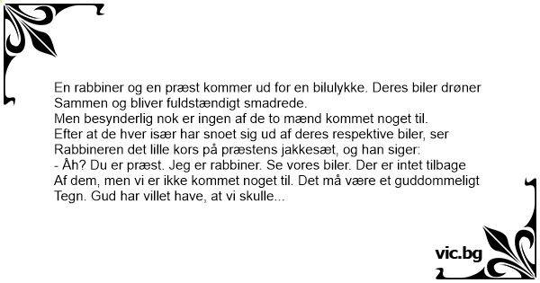 En rabbiner og en præst kommer ud for en bilulykke. Deres biler drøner