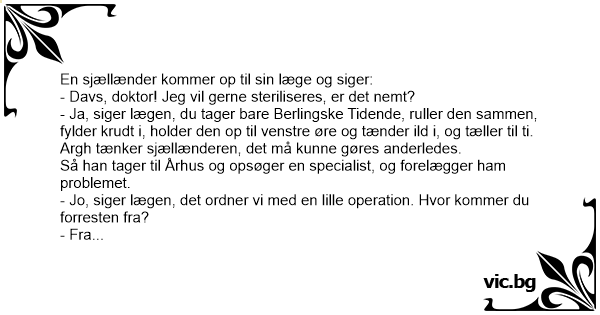 - Jo, siger lægen, det ordner vi med en lille operation. Hvor kommer du forresten fra?
