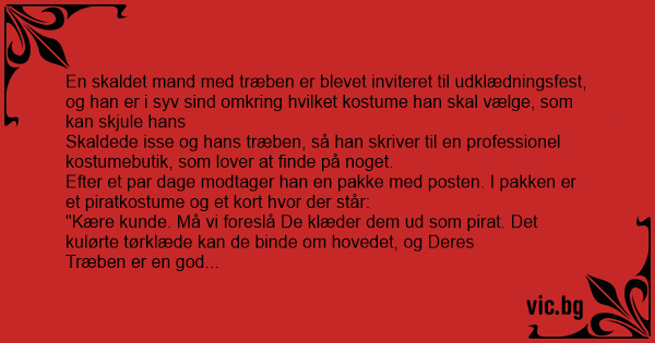 Skaldede isse og hans træben, så han skriver til en professionel kostumebutik, som lover at finde på noget.